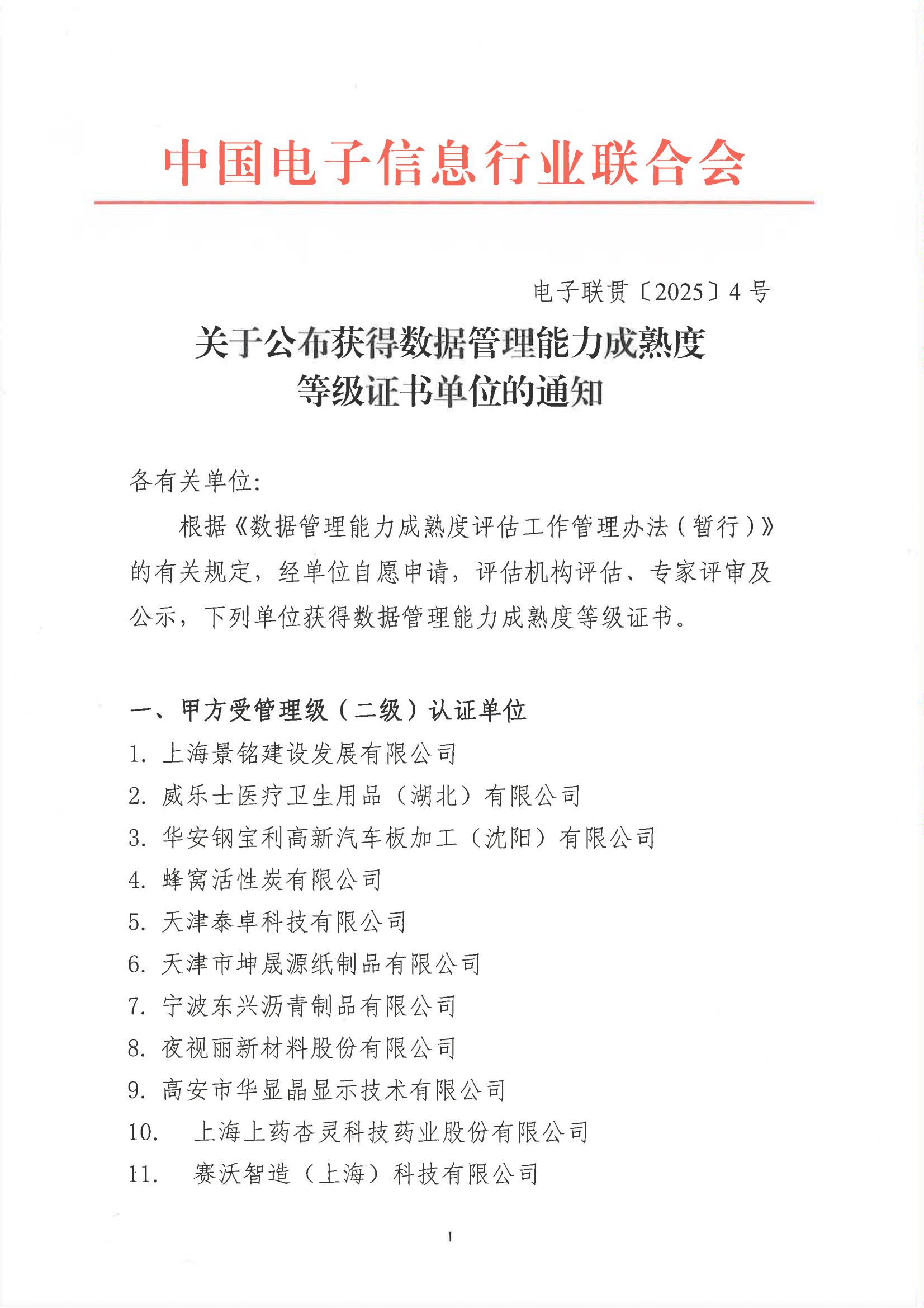 关于公布获得数据管理能力成熟度等级证书单位的通知(第四批)